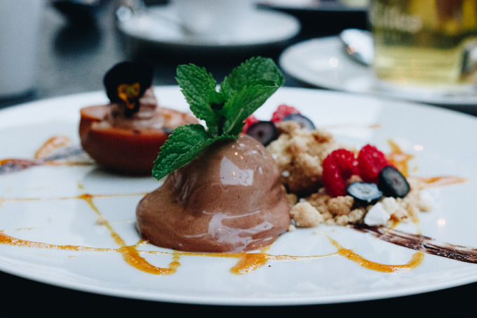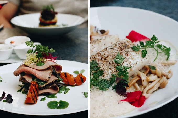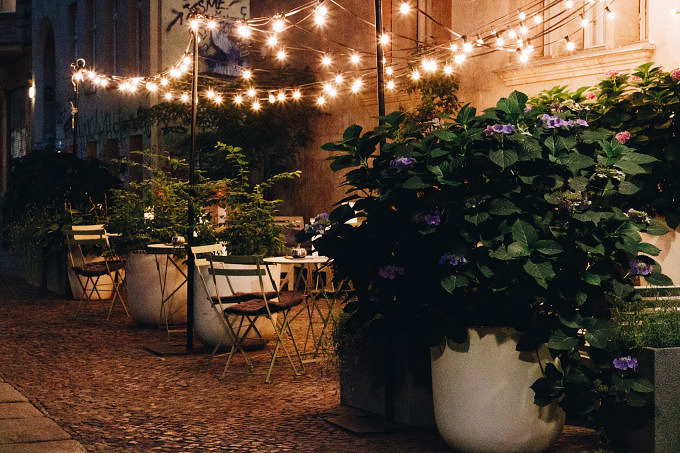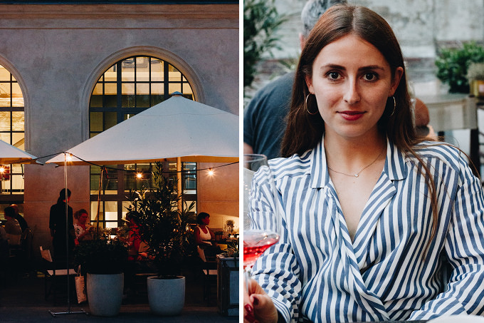 Ich war schon einmal zum Abendessen im Restaurant Oderberger, das war im Winter 2017, kurz nach der Eröffnung. Auch bei meinem zweiten Besuch in dem Restaurant bin ich begeistert. Die Karte ist in ein saisonales Menü und das "Dit is Berlin"-Menü mit Berliner Klassikern wie Klopse und Himmel und Erde unterteilt. Chefkoch Matthias Schmidt kocht feine regionale Küche, und im Sommer schmeckt die nach Bauch vom Apfelschwein aus dem Havelland mit Frühlingszwiebeln und Babymais, Kabeljau mit Pilzen, Kartoffel-Kohlrabi-Stampf und einer Kirsch-Variation aus Kompott, Gel, Baiser und Granité zur Nachspeise. Weil es so schön warm ist, sitzen die meisten Gäste auf der Terrasse im Hof. Hier ist es schön ruhig, vom Touri-Getümmel auf der Oderberger Straße und Kastanienallee bekommt man hier nichts mit und die Rückseite vom Hotel Oderberger ist hier mindestens genauso beeindruckend wie die Straßenseite.