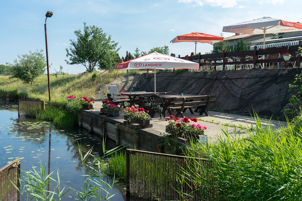 Wer wasserwandert, sollte immer ausreichend Getränke und Verpflegung dabei haben, vor allem an einem so sonnigen Tag wie diesem. Denn auf der Strecke gibt es, im Gegensatz zum Spreewald, nicht allzu viele Restaurants und Lokale, die man ansteuern könnte. Nach dem Havelkrug ist die Fischerei Babke ein willkommener Ort, um zu verschnaufen, ein kühles Radler zu trinken und frischen Fisch aus eigener Produktion zu essen. Von hier aus kann man sich übrigens auch von Ingo Hecht mit dem Auto abholen lassen, wenn man den ganzen Weg nicht zurückpaddeln möchte.