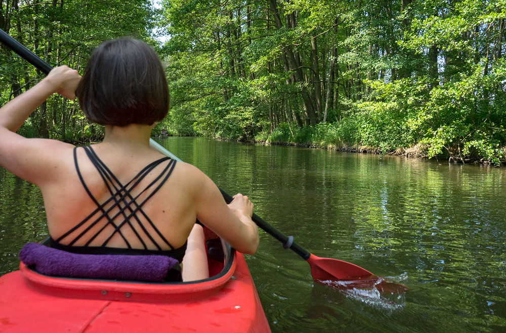 Ich liebe es zwar, in Berlin zu leben. Aber am Wochenende brauche ich eine kleine Auszeit vom lauten Großstadttrubel. Ein perfektes Sommerwochenende besteht für mich aus einem Trip ins Grüne, egal ob baden im Liepnitzsee, picknicken am Kloster Chorin oder – etwas weiter weg – wandern im Elbsandsteingebirge. Mittlerweile habe ich auch Paddeln für mich entdeckt und bin bisher immerhin in den Spreewald gefahren. Auf der Suche nach schönen Paddeldestinationen bin ich über die App DB Ausflug aber letztens auf den Müritz-Nationalpark aufmerksam geworden. Klar, die Mecklenburger Seenplatte ist prädestiniert fürs Wasserwandern. Die Ausflugsapp schlug mir vor, meinen Paddeltag in Kratzeburg in der Nähe von Neustrelitz zu beginnen und so tauschte ich an einem Samstag Ausschlafen gegen einen wunderschönen Ausflug durch das Havelquellgebiet ein.
