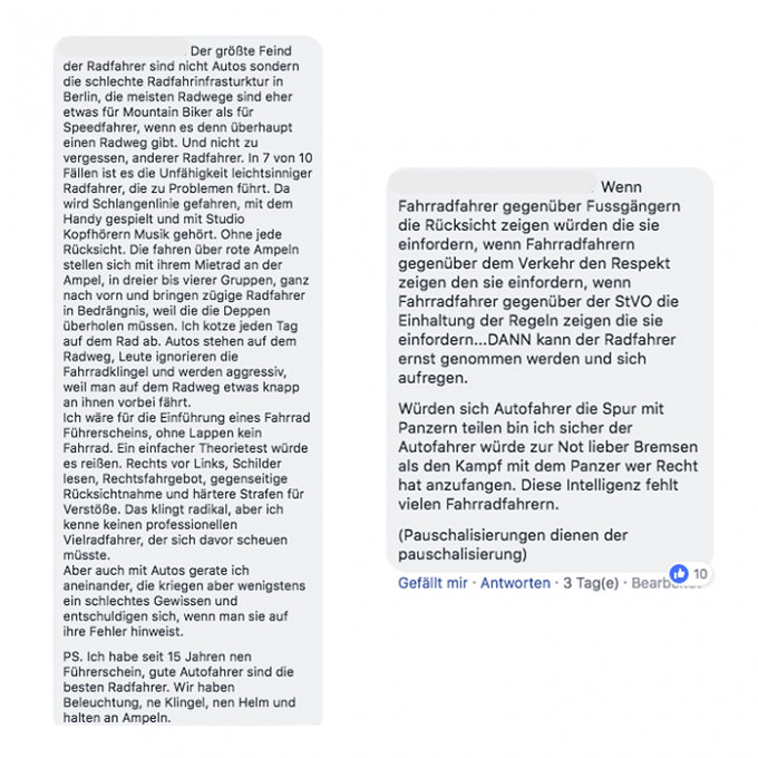 Ich war letztens kurz fassungslos. Das passiert öfter, vor allem, wenn ich mit dem Fahrrad durch Berlin fahre. Aber in diesem Fall saß ich nicht auf dem Fahrrad, sondern vor meinem Computer und las mir die Kommentare zu unserem Meme über die Situation für Fahrradfahrer im Berliner Straßenverkehr durch.