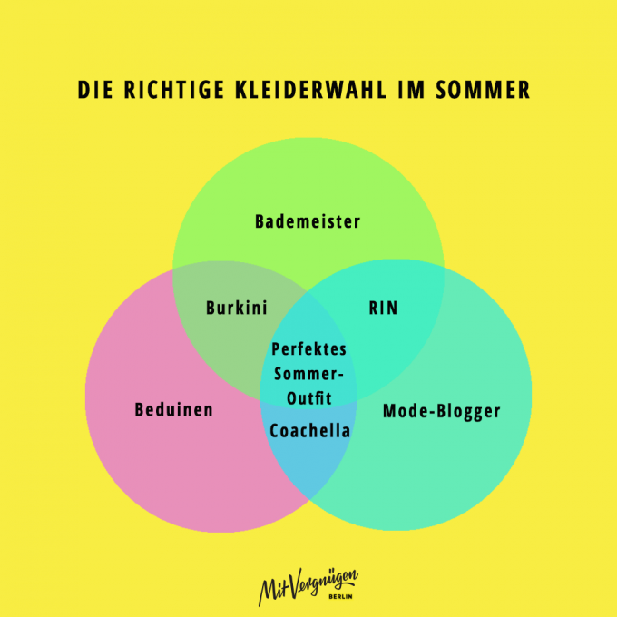 Das Rezept für das ideale Outfit im Rekordsommer, abgeleitet von den eingangs erwähnten Expertengruppen, sieht also vermutlich wie folgt aus: mehrere Schichten bodenlange, dunkle und locker sitzende Gewänder – am besten aus Leinen, fragt die Frauen in den Wechseljahren! – schützen den schwitzigen Leib vom Hals bis zum Knöchel vor aggressiven Sonnenstrahlen. Was seit Jahrhunderten in der arabischen Wüste Männer wie Frauen vor Hitzschlag bewahrt, kann in der Rekordhitze nicht verkehrt sein. An den Füßen eignen sich entgegen aller berechtigten Bedenken Adiletten sehr gut weil a) luftig, b) beste Schuhwahl im plötzlichen Platzregen und c) nötiges Maß an modischem Mir-doch-egal, wie es für den Berliner Stil typisch ist. Flankiert durch Korbtasche und Sonnenbrille fehlt jetzt nur noch in der einen Hand das Kaltgetränk und in der anderen das Eis. Sommer 2018 ist nur einmal im Jahr und mit diesem Outfit sind unvergessliche Momente garantiert!
