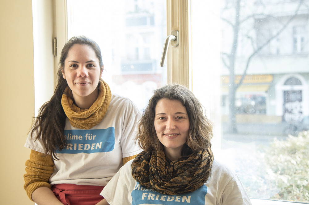 Wie wird das Essen für die 400 Menschen zubereitet? Mein Weg führt mich in die Küche. Dort lerne ich einen Österreicher (links) und Saphea (rechts) kennen. Sie schälen gerade das Gemüse für das Mittagessen. Saphea ist Lehrerin an einem Pankower Gymnasium und arbeitet ehrenamtlich in der Suppenküche, einmal im Monat an einem Samstag, mit.
