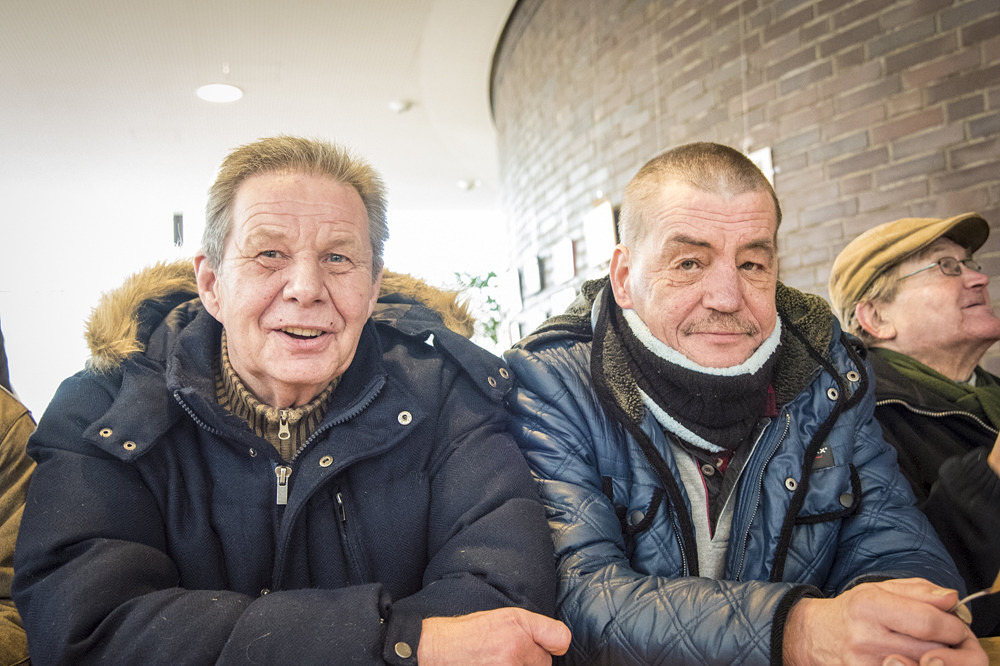 Zwei von ihnen lerne ich kennen – Manfred und Bernd. Sie kommen fast tagtäglich in die Suppenküche. Hier wärmen sie sich auf, essen und treffen Bekannte und Freunde. Bernd lebt auf der Straße und duscht hier auch vor Ort. Manfred hat früher als Krankenpfleger gearbeitet. Er lebt in einer Wohnung, ist aber von Altersarmut betroffen.