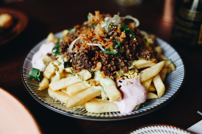 "Chotto kann beides heißen: Ein bisschen und sehr viel", erklärt Andrea, Kuratorin des Chotto. Die Beschreibung passt ziemlich gut zu dem Menü und vor allem zu den Izakaya, den japanischen Tapas. Jede Menge Kleinigkeiten, von Dumplings über frittierten Tofu und Teriyaki bis hin zu den Chotto Fries mit BBQ Rind, Matcha Soße und Shiso Mayo. Ingesamt umfasst die Izakaya-Karte 18 Gerichte, beim Sushi sind es sogar über 50 (davon über 15 vegane) und auch bei Ramen hat man die Wahl zwischen 15 verschiedenen Suppen, darunter drei vegane und fünf glutenfreie. Glutenfreie Ramen gibt es in Berlin sonst nirgends – klar, die müssen wir probieren!