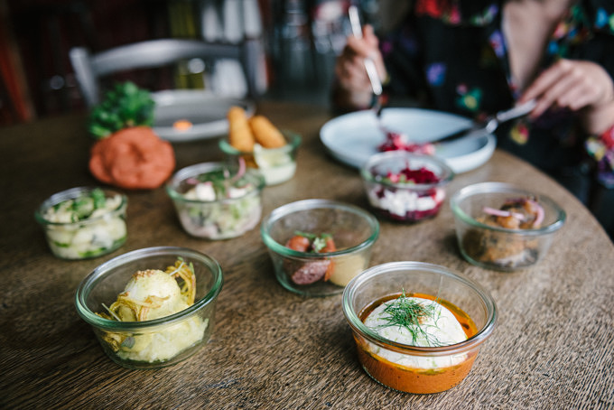 Die Idee war es, die alte Berliner Tradition inklusive Küche neu zu inszenieren. „Die Verbindung aus Bier-Vielfalt und modern interpretierter Berliner Küche soll die Menschen aus dem Kiez, aber auch Liebhaber moderner, leichter Küche ansprechen“, sagt Tim. Das Food Konzept entwickelten Tim und Janosch mit Kristof Mulack, der ehemalige kulinarische Leiter des Restaurants TISK. Zur Vorspeise gibt es allerlei Berliner Tapas – Fischstäbchen mit selbst gemachter Remoulade, Kartoffelsalat oder Berliner Knacker mit Apfelsenf und als Hauptgang die Wahl aus Senfei, Matjes, Blutwurst oder Hummus – alles auf Roggensauerteigbrot von The Bread Station.