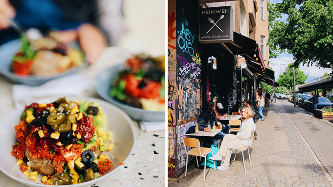 Kumpir ist die vielleicht smarteste Erfindung überhaupt. Kartoffeln allein sind schon super, wenn man das Innere dann aber noch mit Käse und Butter vermengt, ist das schon nahezu perfekt. Das Beste am Heimweh ist, dass man sich hier nicht zwischen ein paar vorgegebenen Kumpir-Variationen entscheiden muss. Hier darf man nämlich, wenn man will, einfach ALLE Toppings futtern. Neben Couscous, Salat, Käse, gegrilltem Gemüse und getrockneten Tomaten gibt es auch viele verschiedene hausgemachte Soßen, Hummus oder Guacamole. Alle Carnivoren können ihre Kumpir mit Chicken oder Sucuk ordern und für alle Veganer*innen gibt's auch Optionen. Also: Kumpir bestellen, all you can top und dann im Görli futtern.
