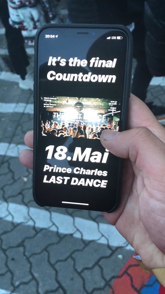 Natürlich verabschiedet sich das Prince Charles mit einer standesgemäßen Party, auf der ihr euer HipHop-Tanzbein schwingen dürft. Die soll am 18. Mai über die Bühne gehen. Sobald wir mehr wissen, geben wir Bescheid!