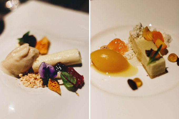 Zum Abschluss unseres Dinners bekommen wir noch zwei Desserts. Das eine schmeckt intensiv nach Mandarine und Olivenöl, das andere nach Feige, Honig und (Kamel-)Milch. Mit diesen ungewöhnlichen Aromen und Geschmäckern im Mund, leicht einen sitzen und durch und durch zufrieden verlassen wir das Prism von Gal und Jacqueline. Wir kommen ganz bestimmt wieder, wenn es einen Anlass zum Feiern gibt und hoffen, dass es das "Prism Social"-Menü dann noch gibt.