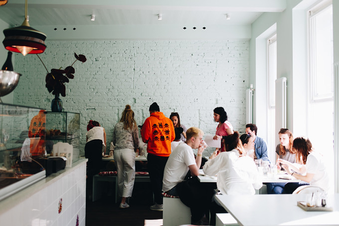 Durch drei große Fenster scheint am späten Vormittag die Frühlingssonne in das türkis gehaltene Café. Sophie steht hinterm Tresen und begrüßt mich mit einem breiten Grinsen, Xenia winkt durch das Fenster aus der Küche runter. Man merkt sofort, dass die beiden Schwestern, die sich in Berlin durch die leckere Eventreihe Das Brunch einen Namen gemacht haben, super happy sind. Der Umbau des Ladens hat, typisch Berlin, viel länger gedauert als geplant. Gut Ding will Weile habe, schätze ich.