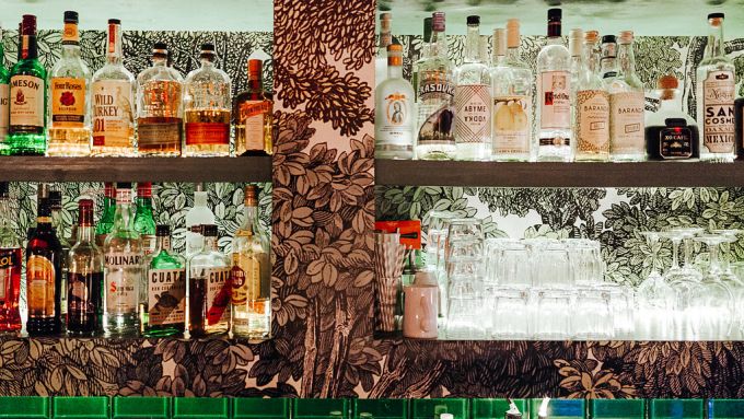 Innen erinnert die Oh! Calcutta Bar an ein modernes Berliner Wohnzimmer mit schummrigen Kerzenlicht, alten Möbeln und einer schicken Tapete. Die große Auswahl an edlen Tröpfchen kann sich sehen lassen. Feinster Berliner Gin, mexikanischer Mezcal oder Bulleit Bourbon zieren die eingebauten Wandregale, die selbst gestaltet und zusammengezimmert sind.