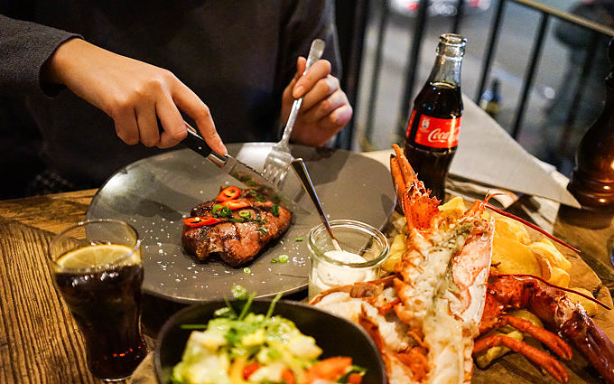 Surf'n'Turf und die original Coca-Cola bei Brian's Steak & Lobster in Hamburg: