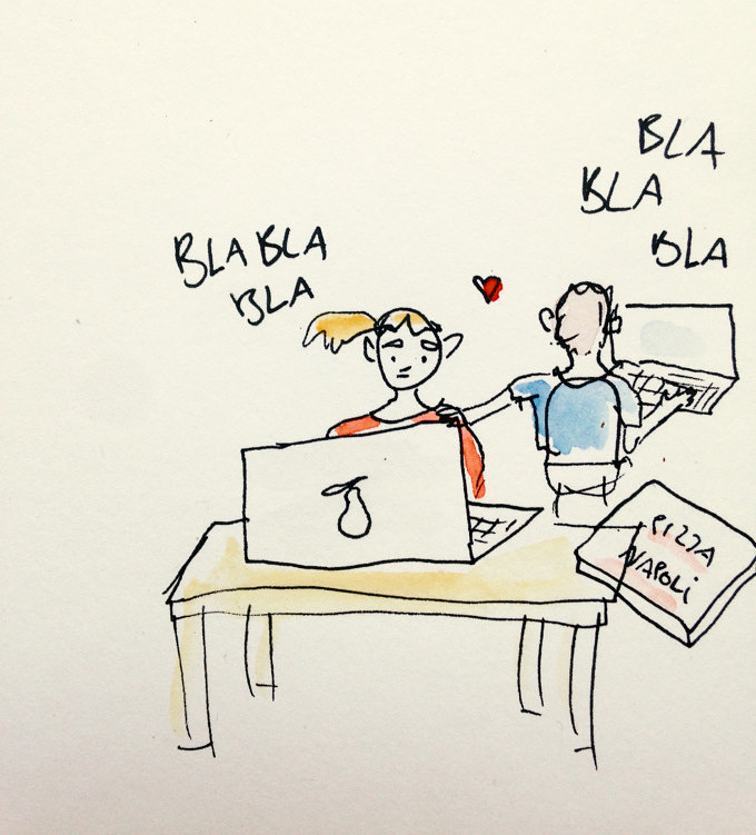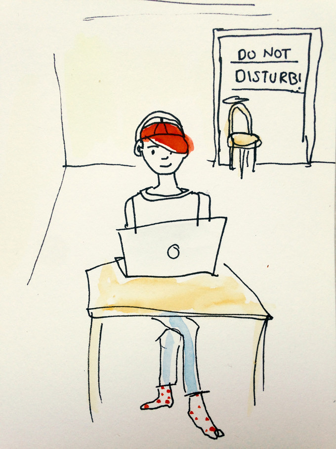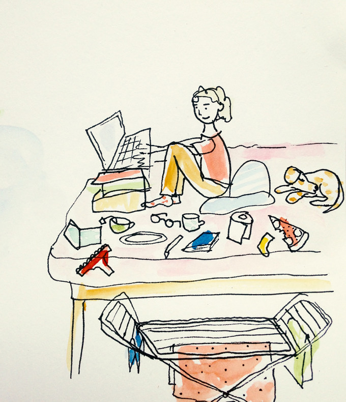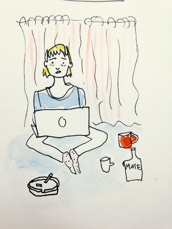 Ständig auf der Suche nach einem ruhigen Arbeitsplatz, werden Möbel verschoben, Zimmer beansprucht, Türen geknallt, die Stecker von Spielkonsolen gezogen und sich über das Schlagzeug-Üben der Mitbewohnerin beschwert. Heimlich wird schon auf WG-gesucht recherchiert, aber am Abend des stressigen Tages wird das Kriegsbeil beim Kochen eines großen Topfes Pasta begraben und auf dem Balkon das eine oder fünfte Bier getrunken. Ende gut, alles gut.
