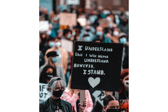 Nutzt eure Stimme und werdet aktiv! Immer wieder finden in allen größeren Städten Demonstrationen in Solidarität mit Schwarzen Menschen statt – geht hin! Sucht euch Gruppen in eurer Stadt, die ihr unterstützen könnt und fragt nach, wie ihr helfen könnt (mehr dazu in Punkt 10). Bittet eure Vorgesetzten oder Dozent*innen um mehr Stoff über diese Themen und setzt euch dafür ein, dass auf der Arbeit oder in der Universität mehr über Rassismus gesprochen wird.