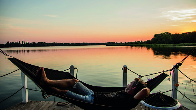 Wer fing eigentlich mit dem Hausboot fahren an? Es müssen die Brandenburger*innen oder die Mecklenburger*innen gewesen sein. Eine Datsche auf einen See zu verlegen ist eben naheliegend, wenn man von beidem mehr als genug hat. Bereits ein Wochenende genügt, um absolut tiefenentspannt zurückzukehren. Zuerst einmal muss man sich entscheiden, wie komfortabel es auf dem Wasser werden soll: Wer nicht auf die Dusche verzichten möchte, mietet ein Bunbo (Bungalowboot). Wer es ursprünglicher mag, ohne feste Türen und mit Sägespäne-Eimer als Toilette, wählt ein Naturfloß. Worauf man aber in jedem Fall achten sollte: eine Außensteuerung. Wer will schon das Naturerlebnis verpassen, weil er die ganze Zeit drinnen sitzen muss? Noch mehr Infos zu diesem Tipp findet ihr im Buch "52 kleine & große Eskapaden" des Dumont Reiseverlags.