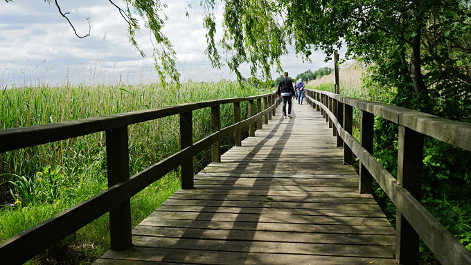 Rund um den See lohnen sich ausgedehnte Fahrrad- und Lauftouren. Dazwischen solltet ihr aber unbedingt auch am Bohlensteg Halt machen und die Beine für eine Weile hochlegen. Wenn das Wetter mitspielt, hat man einen top Blick auf die Umgebung – und speziell auf die Vielfalt der dort ansässigen Vogelwelt. Freund*innen des Gefiederten können hier auch geführte Vogelbeobachtungstouren buchen.