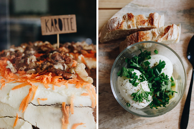 Bei den Zutaten und Produkten für Kaffee, Säfte, Frühstück und Co. achten die beiden darauf, kleine und lokale Unternehmen zu unterstützen. Die Kaffeebohnen stammen aus einer kleinen Familienrösterei in der Toskana und werden über die Espressonisten in Mitte vertrieben, das Matcha-Pulver beziehen sie von den Berliner Matcha-Expert*innen Chiara und Anton von AMIKAMATCHA und in Sachen Kuchen haben sie sich Verstärkung von zwei meiner Lieblingsadressen geholt. Wir waren nach dem Frühstück so satt, dass da leider kein Platz mehr für Kuchen war. Ein Stück vom Carrot Cake solltet ihr aber probieren. Schaut doch mal im Café Flo vorbei, wenn ihr auf der Suche nach einem netten Café in Prenzlauer Berg seid. Egal ob für einen Coffee to go, für ein gemütliches Frühstück mit Freund*innen oder auf ein Stück Kuchen nach dem Flohmarkt.