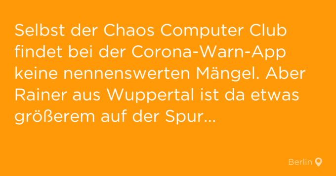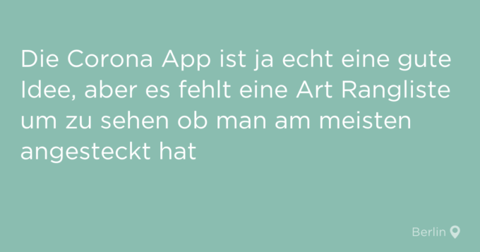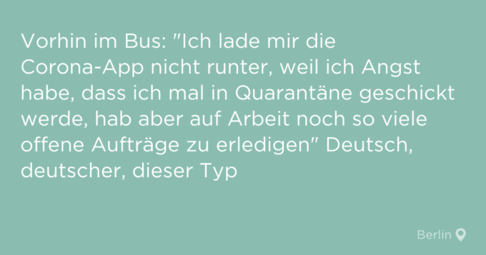 Hui, diese Woche war mal wieder einiges los im Internet. Das Thema Nummer eins, das in den vergangenen Tagen den Diskurs bestimmte und vermutlich jeder*m Verschwörungstheoretiker*in, der*die etwas auf sich hält, schlaflose Nächte bereitet: die neue Corona-Warn-App. Nicht verwunderlich, dass auch auf Jodel hitzig diskutiert wird: Hat die Corona-App das Zeug zur App des Jahres? Wie viel kostet eigentlich die Premium-Version? Und warum hab ich nach drei Tagen immer noch kein Match? Fragen über Fragen, die euch vielleicht nicht mal Christian Drosten beantworten kann. Aber lest selbst:
