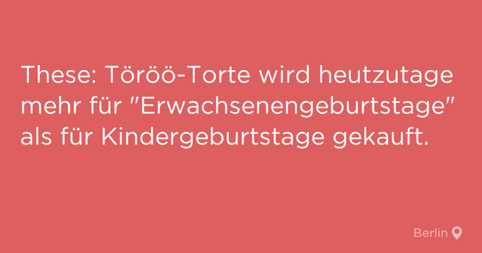 Denkt mal kurz an die Geburtstage in eurer Kindheit zurück: Wart ihr Team "Selbstgebackener Schokokuchen von Oma" oder Team "Benjamin-Blümchen-Torte"? Wenn es bei euren Geburtstagen nie die Töröö-Torte mit dem kleinen Plastik-Benjamin in der Mitte gab, hattet ihr wohl keine Kindheit – zumindest, wenn ihr einige Berliner Jodler*innen fragt, denn dort war die Töröö-Torte diese Woche ein ganz großes Thema. In den unsicheren Zeiten, in denen wir gerade leben, kann man ja auch schon mal nostalgisch werden. Wenn euch das nächste Mal der Weltschmerz überkommt, geht einfach in den nächsten Supermarkt und kauft euch eine Töröö-Torte, dann sieht die Welt schon wieder anders aus. Und bitte alles aufessen, vielleicht gibt es dann auch mal richtiges Sommerwetter in Berlin!