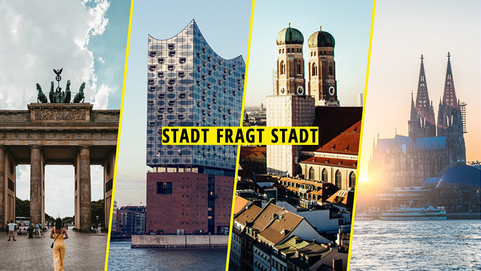 Mit Vergnügen gibt es in vier schönen Städten Deutschlands: Berlin, Hamburg, München und Köln. Wir Redakteur*innen sprechen via unserer digitalen Endgeräte beinahe jeden Tag und trotzdem bemerken wir immer wieder, dass wir die Eigenarten der einzelnen Städte gar nicht so gut kennen! Was bedeutet in Köln eigentlich Fründe? Was macht man, wenn man in Hamburg keine Fischbrötchen mag? Wieso ist Bier in Bayern ein Grundnahrungsmittel und wer hat eigentlich den Pfeffi erfunden, liebe Berliner*innen? Jede Woche könnt ihr jetzt unsere Antworten dazu lesen bei "Stadt fragt Stadt".