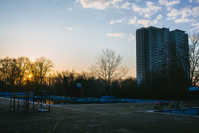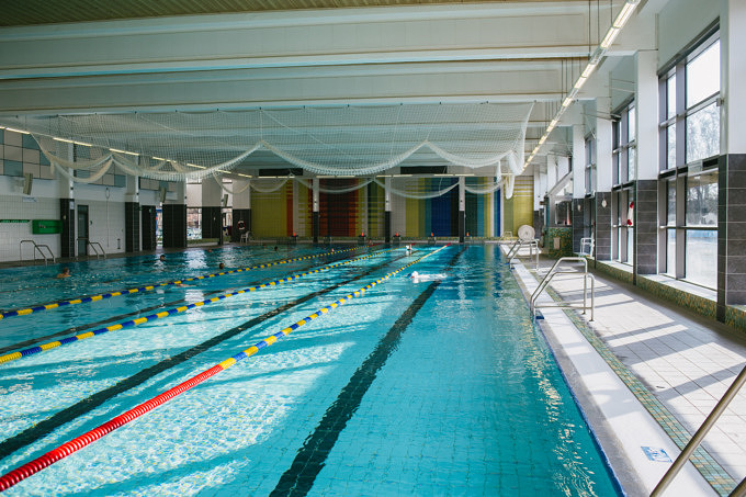 06.00 Uhr: Pünktlich um 06 Uhr stehe ich halb eingefroren und durchnässt – auch in Spandau regnet es – nach 75 Minuten Fahrt vor dem Kombibad Spandau. Zweites Memo an mich: Nach Möglichkeit mache ich den Termin für mein nächstes Praktikum nicht so weit draußen. Ich treffe auf Heike Doughty, die Ausbildungsleiterin des Bades und meine heutige Chefin, die mich strahlend empfängt: "Bisschen früh für dich, wa? Lass uns erstmal reingehen, da ist's schön warm." Ihr scheint das frühe Aufstehen mittlerweile wohl nichts mehr auszumachen. Drinnen angekommen, weiß ich, wovon Heike spricht: Es ist wirklich unfassbar muckelig hier drin. Der leichte Geruch nach Chlor und die heiße Luft erinnern mich sofort an winterliche Badeausflüge – irgendwie schön. "Jetzt zieh dich aber mal schnell um, die anderen sind schon unten im Bad, um 06.30 Uhr kommen die ersten Badegäste und wir haben vorher noch einiges zu tun!"