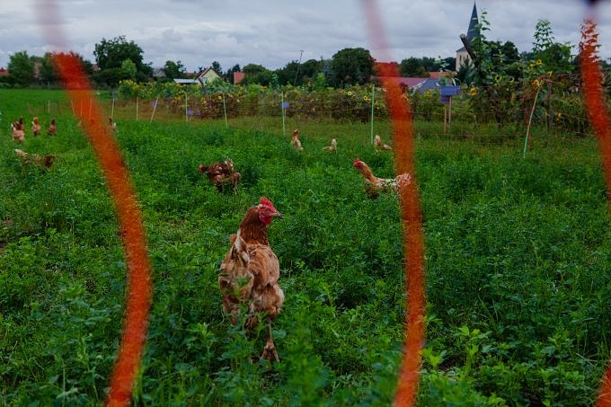 Ab nach Madlitz! Eine gute Stunde Autofahrt östlich von Berlin liegt der Hof Gut&Bösel in einem ruhigen, sehr hübsch rausgeputzten Brandenburger Dorf. Ringsum gibt es viel (Acker-)Land. Insgesamt 1100 Hektar Boden bewirtschaftet der Betrieb hier (noch) überwiegend konventionell. Dazu kommt ein großer Forst und eine wachsende Herde Weiderinder. Das Getreide, das Obst und Gemüse sowie die Eier werden an große Abnehmer*innen wie Alnatura und kleine Händler*innen wie Von Beet & Baum in der Markthalle Neun vertrieben.