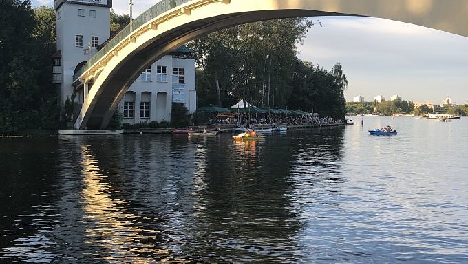 Wenn ihr im Treptower Park unterwegs seid, lohnt sich ein kleiner Abstecher auf die Insel der Jugend. Im Biergarten Inselgarten könnt ihr entspannt sitzen, essen und trinken und dabei aufs Wasser und dem Treiben zuschauen. Regelmäßig finden hier außerdem Konzerte, Lesungen, Theater oder der "Insel Slam" statt. Das wird euch zu bunt? Dann mietet euch fix ein Tretboot oder ein Kajak und schippert in den Sonnenuntergang.