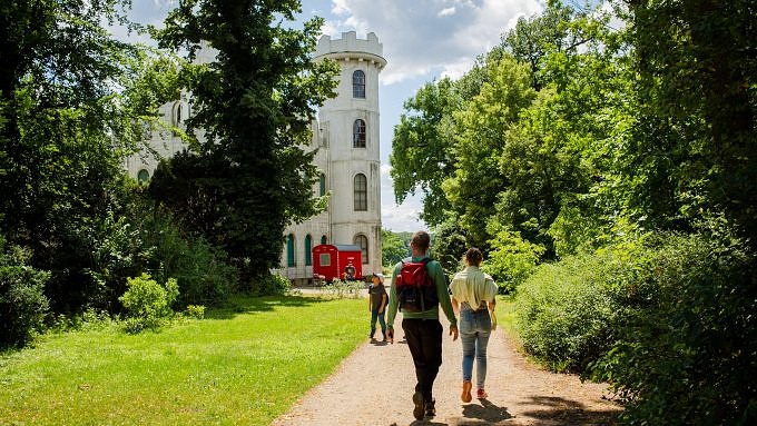 Mit der Fähre von der Anlegestelle am Düppeler Forst (zu erreichen mit dem Bus 218 ab S-Bahnhof Wannsee) dauert die Überfahrt zur märchenhaften Pfaueninsel nur wenige Minuten. Der Landschaftspark gehört zur Stiftung Preußische Schlösser und Gärten Berlin Brandenburg und zum UNSECO Weltkulturerbe. Auf dem 67 Hektar großen Areal leben freilaufende Pfaue, die der Insel ihren Namen geben. Zu bestaunen gibt es, neben dem wunderschönen Parkanlagen, noch ein Schloss und verschiedene andere Gebäude aus der Zeit der preußischen Herrschaft. Tipp: Die ersten Fähren fahren bereits um 09 Uhr los und dann ist die Insel auch noch richtig schön leer. Es lohnt sich also, früh aufzustehen, mit dem Rad durch den Grunewald zur Anlegestelle zu fahren und dann fast alleine auf der Insel zu schlendern.