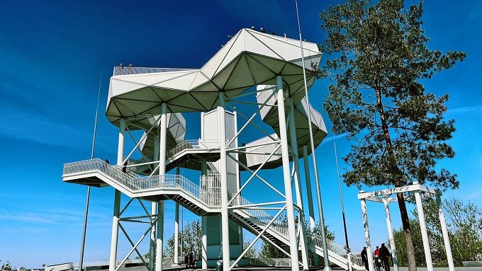 Wir sind ehrlich: Wirklich oft sind wir nicht so weit draußen. Der Wolkenhain auf dem Kienberg bringt uns dann aber doch dazu, die knapp 15 Kilometer mit dem Rad in den Kienbergpark zu düsen, denn der Blick ist wirklich atemberaubend. Ursprünglich für die IGA 2017 erbaut, ist die rund 120 Meter über dem Meeresspiegel befindliche Stahlkonstruktion aber nicht nur architektonisch ein absolutes Highlight zwischen den Marzahner Hochhäusern. Bei gutem Wetter könnt ihr bis zu 50 Kilometer in die Ferne blicken und euren Blick zwischen Berlin und der brandenburgischen Landschaft samt Windparks hin und her schweifen lassen. Zwölf Kilometer reichen aber auch schon, um den schönen Fernsehturm und viele andere Sehenswürdigkeiten zu entdecken – Markierungen auf dem Boden verraten euch, wo ihr nach ihnen Ausschau halten müsst.