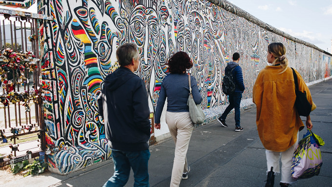 Berlin ist eine Hochburg, wenn es um Kunst im öffentlichen Raum geht. Die East Side Gallery gehört mit ihren 1,3 Kilometern zu den längsten Open-Air-Galerien der Welt und erinnert zugleich an die bewegte Geschichte des geteilten Berlins. Auf den Mauerresten haben sich ab 1990 Künstler*innen mit verschiedenen Motiven verewigt, die an "die Überwindung des eisernen Vorhangs in Europa" und die Freude über eine friedliche Revolution und den Mauerfall von 1989 erinnern sollen. 2009 wurde die East Side Gallery saniert. Mittlerweile befinden sich wieder über 100 großformatige Murals an der Mauer, die jedes Jahr mehr als drei Millionen Tourist*innenen anzieht. Seit 2018 steht die East Side Gallery auch unter Denkmalschutz.