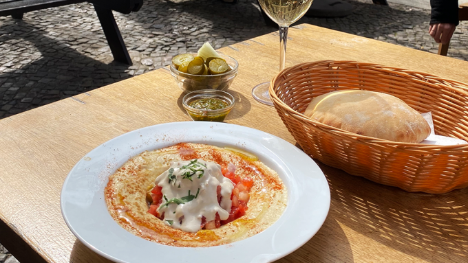 Die Hummusjünger*innen teilen sich in Berlin in zwei Lager: Die einen schwören auf Kanaan, die anderen eben auf Zula. Bei letzterem gibt's – Überraschung – köstlichen Hummus mit verschiedenen Toppings, zum Beispiel Ei, Ful, Hähnchen oder sogar Gulasch. Heimlicher Star ist hier aber das Sabich und da ist zum Glück auch eine Menge Hummus drin. Dazu gibt's israelischen Wein und auf der Terrasse Sonne. Noch Fragen?