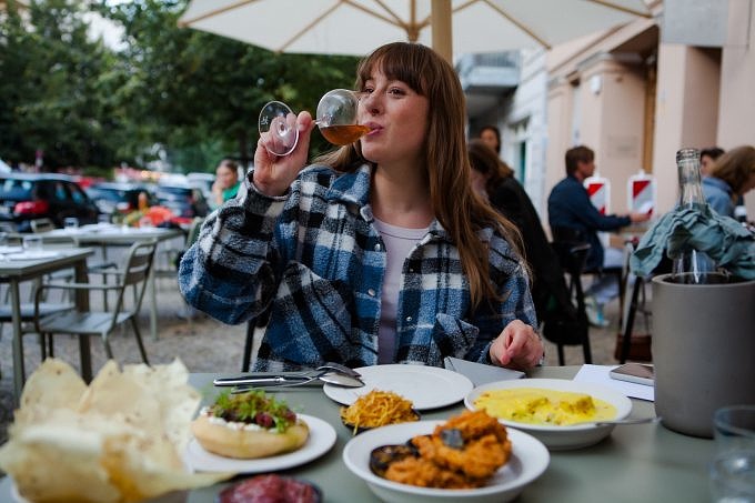 Mit der Karte verbindet Lisa ihre Wurzeln aus Sri Lanka mit ihrer deutschen Heimat. Die blitzt vor allem bei der Weinauswahl durch: leckere Tropfen vom Bodensee und einen Riesling vom ältesten Weingut Deutschlands an der Mosel. In unseren Gläsern landet ein französischer Orangewein, der den Gerichten an Aroma in nichts nachsteht.