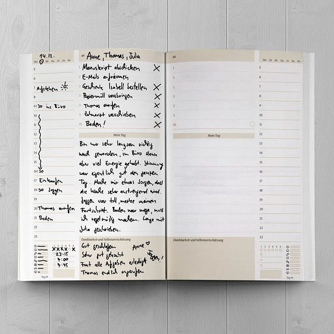 Da allgemeine Tipps eben auch nur das sind, nämlich allgemeine Tipps, die euch mal mehr und mal weniger helfen, ist es sinnvoll, euch diesen Winter genauer mit euren Bedürfnissen und eurer Selbstfürsorge auseinanderzusetzen. Das kostenlose Selbstfürsorgetagebuch Ein guter Winter von Ein guter Plan unterstützt euch 100 Tage bei der Planung eures Alltags, dem Kümmern um eure sozialen Kontakte und dem Pflegen eurer guten Gewohnheiten. Das Buch ist aber weder eine Garantie für Glück noch eine Schritt-für-Schritt-Anleitung für konstant gute Laune. Es ist vielmehr ein Werkzeugkasten eurer mentalen Gesundheit, aus dem ihr euch je nach Bedarf bedienen könnt. Ihr könnt euch das E-Book jetzt gratis herunterladen, ausdrucken und sofort loslegen.