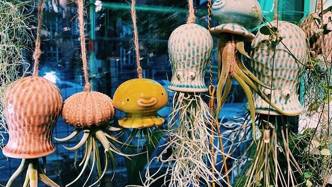 Der kleine Pflanzenladen ist obenhin voll mit den kleinen, grünen Lebewesen. Wie der Name verrät, gibt es von der Pilea bis zur Monstera allerlei Schönheiten. Ganz besonders hübsch sind die Air Plant Holder in Form von Tintenfischen, in denen Trockenpflanzen die Tentakel bilden und ein Zimmer in ein kleines Aquarium verwandeln. Wenn ihr euch doch für eine größere Pflanze entscheidet, findet ihr hier auch handgefertigte Übertöpfe, die von den Inhaber*innen Jue und Dingding aus ihrer Heimat China importiert werden.