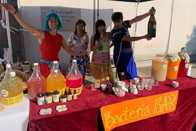 Stolz wie Bolle wollen wir das neue Schmuckstück natürlich gleich präsentieren – und uns mit einem frischen Drink für unsere Bastelarbeit belohnen. Kein Problem, denn bei der ultimativen Trash-Gala kommt natürlich auch das leibliche Wohl nicht zu kurz – und zwar in Form von leckeren Smoothies aus geretteten Lebensmitteln, im Mikrobenzirkus fermentierten Cocktails oder auch frisch aus alten Brotresten gebrautem Bier. Wie ihr euch denken könnt, wird hier wirklich nichts verschwendet.
