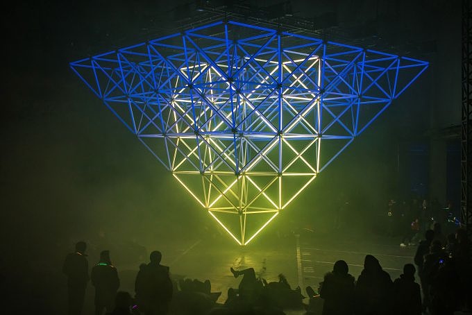 STALACTITE ist eine beeindruckende Konstruktion, die in Form einer umgedrehten Pyramide über den Besucher*innen schwebt – eine leuchtende Hängeskulptur, die aus 360(!) Lichtelementen besteht. Doch damit nicht genug: Wie man es von Christopher Bauder kennt, erwartet euch natürlich ein audio-visuelles Erlebnis der Extraklasse. Träumen, meditieren, staunen – mal sehen, was mit euch passiert, wenn ihr euch auf das Happening einlasst.