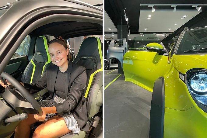 Bis zu 250 Kilometer* mit einer Spitzenleistung von 80 kW ist man im städtischen Bereich mit ihm unterwegs, bevor er kurz mal Krafttanken sollte. Ein Zwischenstopp an der normalen Haushaltssteckdose reicht dabei aus, aber auch Schnellladen mit 11 kW ist für den Flitzer natürlich kein Problem. Und Probleme ihn zu entdecken, hat man im Brand Store sowieso nicht. Hier steht er natürlich wortwörtlich im Mittelpunkt des Interesses – und hinter ihm an der Wand sitzt Neymar da Silva Santos Júnior, besser bekannt als Neymar Jr., lächelnd in ihm. Der Profifußballer ist Markenbotschafter der Brand und hat das neue Modell auch erstmals der Öffentlichkeit vorgestellt.