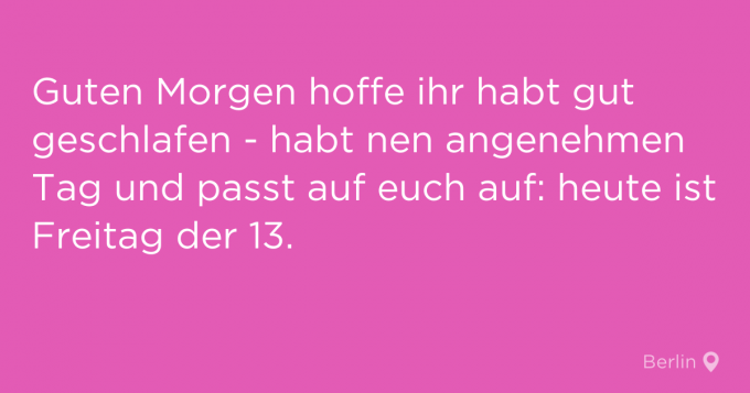 An einem Freitag, dem Dreizehnten, weiß man nie so genau, welche Überraschung um die Ecke kommt. Vielleicht kostet der Lieblingsdöner auf einmal 50 Cent mehr, vielleicht entpuppt sich das Date in der Backfactory als geschmacklos. Vielleicht trefft ihr aber auch zufällig einen süßen Boy oder ein süßes Girl (das hoffentlich keinen positiven Schnelltest zu Hause herumliegen hat) in der M27. Was auch immer dieser Tag bringen mag: Habt Spaß, grüßt Frau Polle und lest die Jodel der Woche.