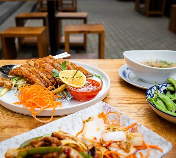 Wer an zünftige Brauhausküche denkt, dem*der fällt wohl zunächst – abgesehen von Brezeln und Pommes vielleicht – kein veganes Gericht ein. Das Vaust hingegen liefert seit 2012 die vegane Antwort auf all die zünftigen Gaststuben, denn hier bekommt ihr ehrliche Brauhausküche komplett vegan. Von Maultaschen und Currywurst über Vesperplatten, Frikassee, Schnitzel und Spätzle kommt hier alles ohne tierische Produkte aus. Zur Spargelzeit könnt ihr euch zum Tempeh-Schnitzel mit Sauce Hollandaise und Kartoffeln zudem Beelitzer Spargel dazu bestellen. Ansonsten können wir euch auch die Miso-Spätzle mit Röstzwiebeln, Petersilie und getrockneten Tomaten empfehlen. Wenn am Ende noch Platz ist, solltet ihr euch auf Karamell-Flammerie und Schokokuchen stürzen.