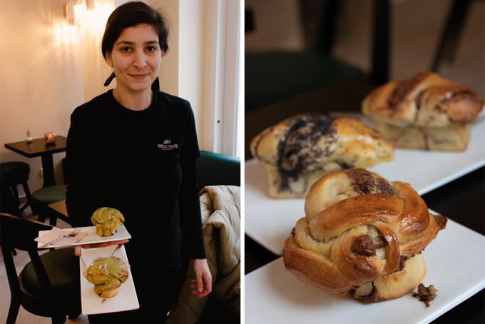Unbedingt probieren: Das Pistazien-Kräntzchen und die Babushka Balabusté mit Schokolade und Haselnuss.