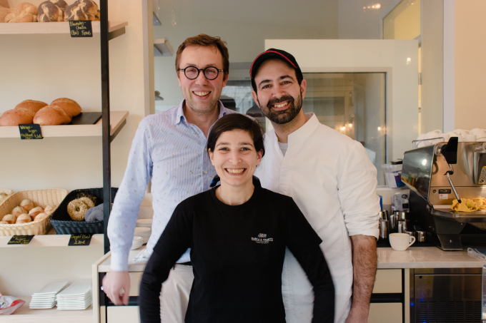 Wir sind ein paar Wochen nach der Eröffnung zum Frühstück im Babka & Krantz und merken schnell: Die Bäckerei ist aus dem Kiez nicht mehr wegzudenken. Immer wieder geht die Tür auf, Nachbar*innen und Stammkund*innen kommen rein, holen Bestellungen ab, setzen sich an ihre Lieblingstische und halten einen kurzen Plausch mit Gastgeberin Rotem ab. Hier herrscht ein so warmes, herzliches und familiäres Klima, wie wir es lange nicht mehr erlebt haben. Man spürt, dass sich Shahar, Marcin und Rotem mit dem Babka & Krantz einen Herzenswunsch erfüllt haben und mit dem ersten Bissen in das noch warme Pistazien-Kräntzchen schmeckt man es auch.