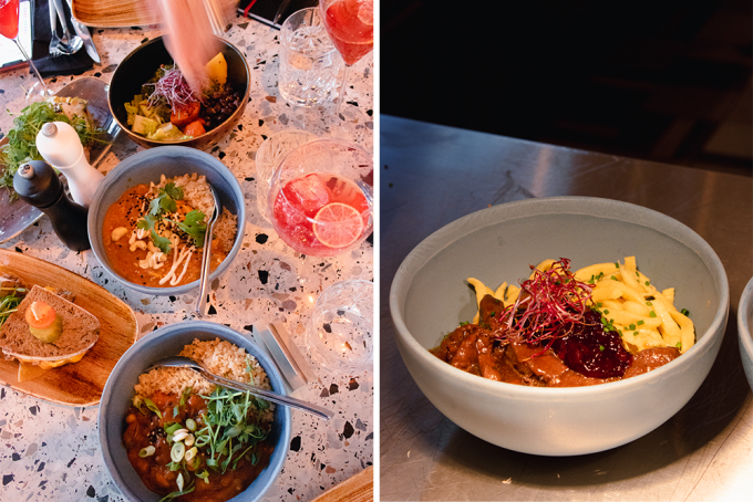 Bei unserem Lunch haben wir die hauseigenen "Berliner Stullen" mit Rote Beete Hummus, Avocado und Sous-vide gegarten Eiern sowie die Pulled Beef Stulle mit Cheddar und Gewürzgurke probiert. Das Landbrot ist schön kross, das Fleisch saftig und die Eier haben die perfekte Konsistenz. Im Sommer eigenen sich die kalten Bowls ideal zum Mittagessen, zur kalten Jahreszeit greifen wir lieber zu den warmen Gerichten wie dem zarten Butter Chicken mit Vollkornreis, der Kartoffelsuppe oder dem veganen Auberginencurry mit Tomaten und Kichererbsen.