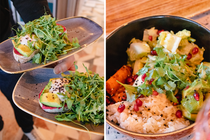 Veggie: Die meisten Gerichte sind vegetarisch und vegan. Einige Bowls werden mit Fleisch serviert, bei anderen kann man Add-ons wählen.