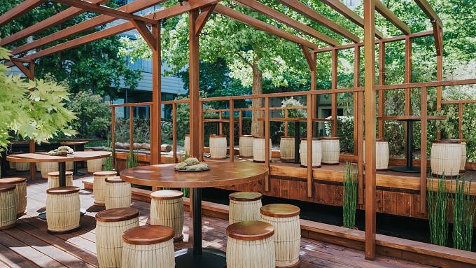 Statt alles möglichst traditionell zu halten und somit gezwungenermaßen viele Produkte aus Vietnam importieren zu müssen, setzt Huy Thong auf eine Mischung mit Regionalem. So kommt der geräucherte Seitan auch mal mit Rosmarin-Thymian-Ummantelung daher und auch die Crêpe werden mit Thymian abgeschmeckt. Das Con Tho betritt man über eine große Terrasse, die voll bepflanzt ist mit Bambus und überraschend gut von der Straße abgeschirmt wird. Im Restaurant selbst wird man dann von Bambusstäben und großen, warmen Lampen umhüllt – und zwar im wahrsten Sinne des Wortes, denn die Stäbe ummanteln nicht etwa die Wände, sondern sprießen aus dem Boden, aus der Decke, mitten im Raum, als Sichtschutz und als Deko.
