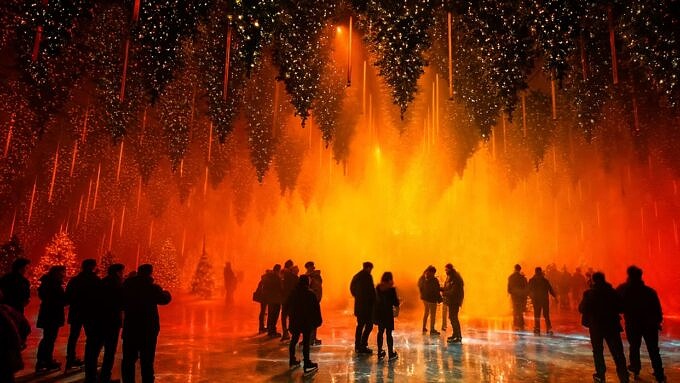 Wenn ihr dachtet, Lichtkunst kann euch nicht mehr überraschen, wartet, bis ihr „Forest – Winterlights“ erlebt. In der monumentalen Transformatorhalle von Dark Matter schwebt ein ganzer Wald aus kopfstehenden Tannen über einer 400-Quadratmeter-Eisbahn. Über 250.000 Lichter, sphärische Klänge und Glühweinduft verwandeln das Gelände in ein funkelndes Winterwunderland. Ein Spaziergang durch diesen Wald ist wie ein leuchtender Traum zwischen Moderne und Märchen.