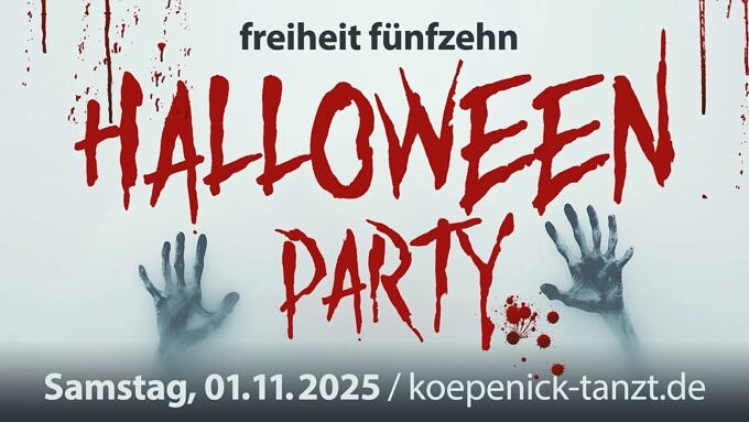 Wenn ihr Halloween lieber mit Nebel, Beats und Gänsehaut feiert als mit Netflix und Kürbissuppe, dann ab zur Halloween Party in der freiheit fünfzehn in Köpenick. Am 1. November verwandelt sich die Location in eine düstere Tanzhöhle mit schauriger Deko, sattem Sound und einer Nacht voller Überraschungen. Tanzt mit Vampiren, Zombies und anderen Nachtgestalten bis in den Morgen, posiert am kostenlosen Fotospiegel und zeigt eure kreativsten Looks – Kostüm ist kein Muss, aber definitiv erwünscht. Tickets gibt’s ab 13 Euro im Vorverkauf.