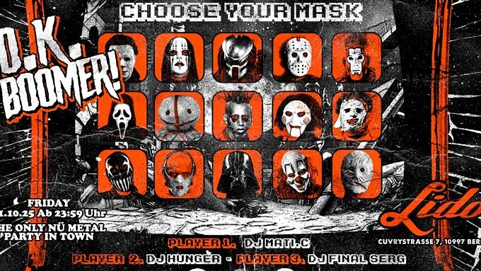 Wenn ihr zu Halloween mal wieder richtig abrocken wollt, zieht euer wildestes Kostüm an und kommt am Freitag ab 23:59 Uhr ins Lido! Bei der "OK Boomer – Halloween Edition" fliegen euch Nu-Metal-Hymnen von Limp Bizkit, Linkin Park, Korn & Co. um die Ohren, dazu gibt’s Kicker, Drinks und jede Menge Nostalgie. Wer verkleidet kommt, bekommt eine kleine Überraschung – also ran an den Kajal, rein in die Stiefel und ab auf die Tanzfläche. Slipknot statt Spukhaus, das ist euer Halloween am Schlesi!