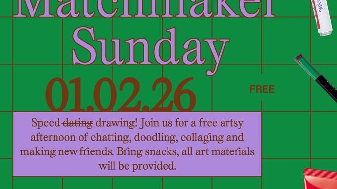 Wenn ihr am Sonntag Lust auf einen entspannten Nachmittag mit Stiften statt Smalltalk habt, schaut beim Matchmaker Sunday bei Colorama vorbei. In kleinen Runden zeichnet, collagiert und arbeitet ihr gemeinsam mit wechselnden Partner*innen an Mini-Kunstwerken. Am Ende werden alle Werke risogedruckt und ihr nehmt ein gemeinsames Poster mit nach Hause. Eintritt frei, bringt nur einen Snack zum Teilen mit.