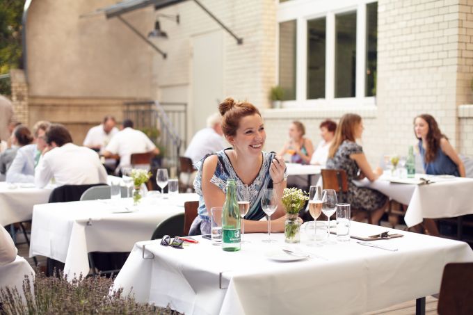 Am Ende der Straße, nahe des Kielufers und im zweiten Hinterhof versteckt, muss man ein wenig suchen, um das Restaurant zu finden. Und so hebt sich auch das Publikum, das den frühen Abend mit Rosé und Alster auf der Terrasse einläutet, vom Rest der Nachbarschaft ab. Kulinarisch gut unterrichtete, ältere Herrschaften sitzen neben Studenten, die ihren Eltern den "neuen, heißen Scheiß" zeigen wollen, und Dates, denen der Koreaner um die Ecke zu langweilig ist. Viel Durchmischung mit den Kiezbewohnern scheint es nicht zu geben, aber vielleicht ist dieser Inselcharme gewollt.