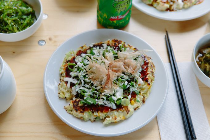 Herzhaft, je nach Vorliebe mit Lauch, Garnelen, Mais oder Hackfleisch ergänzt, werden die Tortilla-artigen Fladen gebraten und anschließend mit Frühlingszwiebeln, Bonito-Flocken, Lemon-Sojasauce, Ponzu, dem klassischen Okonomi- oder koreanischem Dressing serviert. Definitiv kein Gericht für den kleinen Hunger, aber nach einer durchfeierten Nacht oder einem übertriebenen Sport-Wochenende richtig schönes Soulfood.