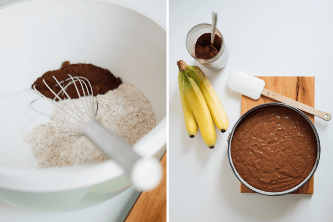 1. Mehl, Salz Kakaopulver und Backpulver in eine große Schüssel sieben.
